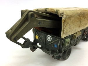 I then put on the truck canopy to hide the majority of the crane workings, next on the list were support trusses these I removed the ends from the base plate of the 88 model, and after trimming off storage boxes on the rear of the truck bed fixed one to each corner.