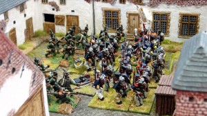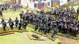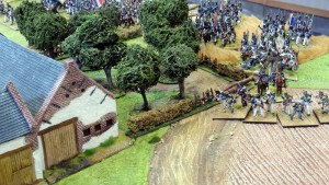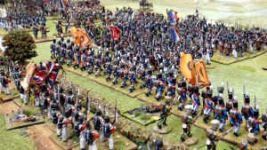 Chris: Our club recently hosted a large Black Powder Waterloo game (which just ‘happened’ to be the anniversary of the battle – heh heh). Here’s a selection of the many many photos that were able to take through out the day, recording the set up through some key battles to winning the final objective!