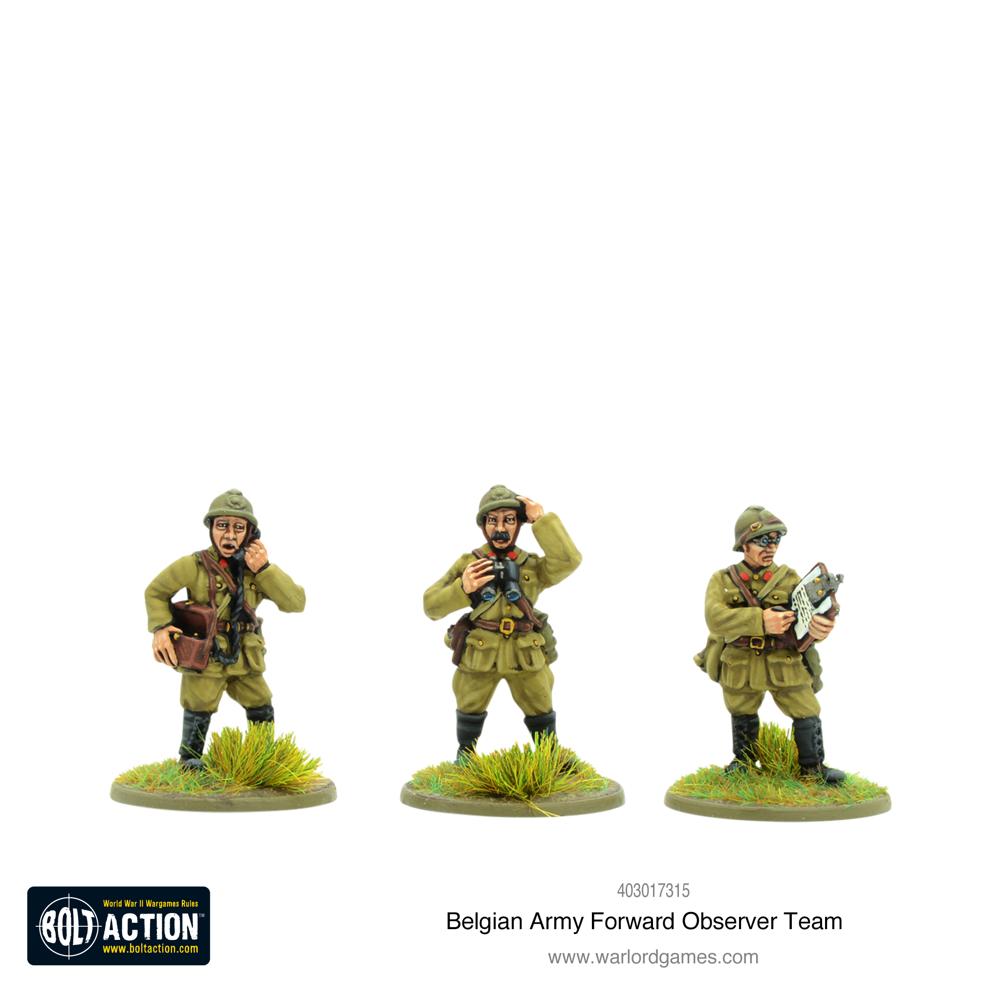 Forward Observers are liaison officers responsible for coordinating the attack of heavy artillery batteries from behind the lines. They are likely to be accompanied by a radio operator and other immediate attendants. Bolt Action rates the officers as Regular or Veteran.