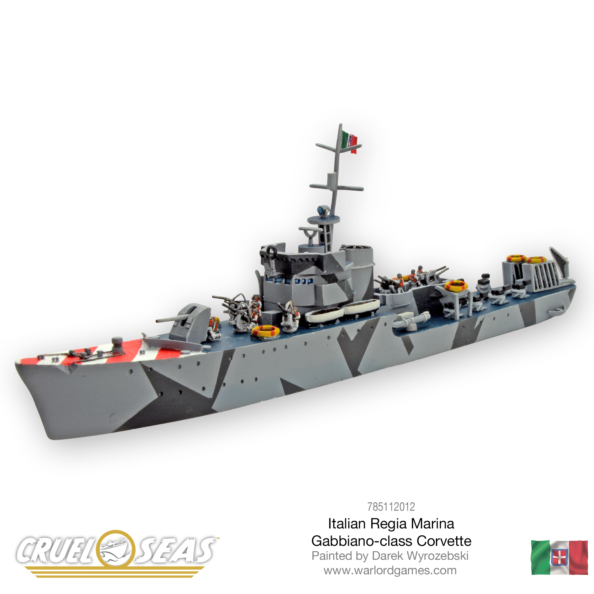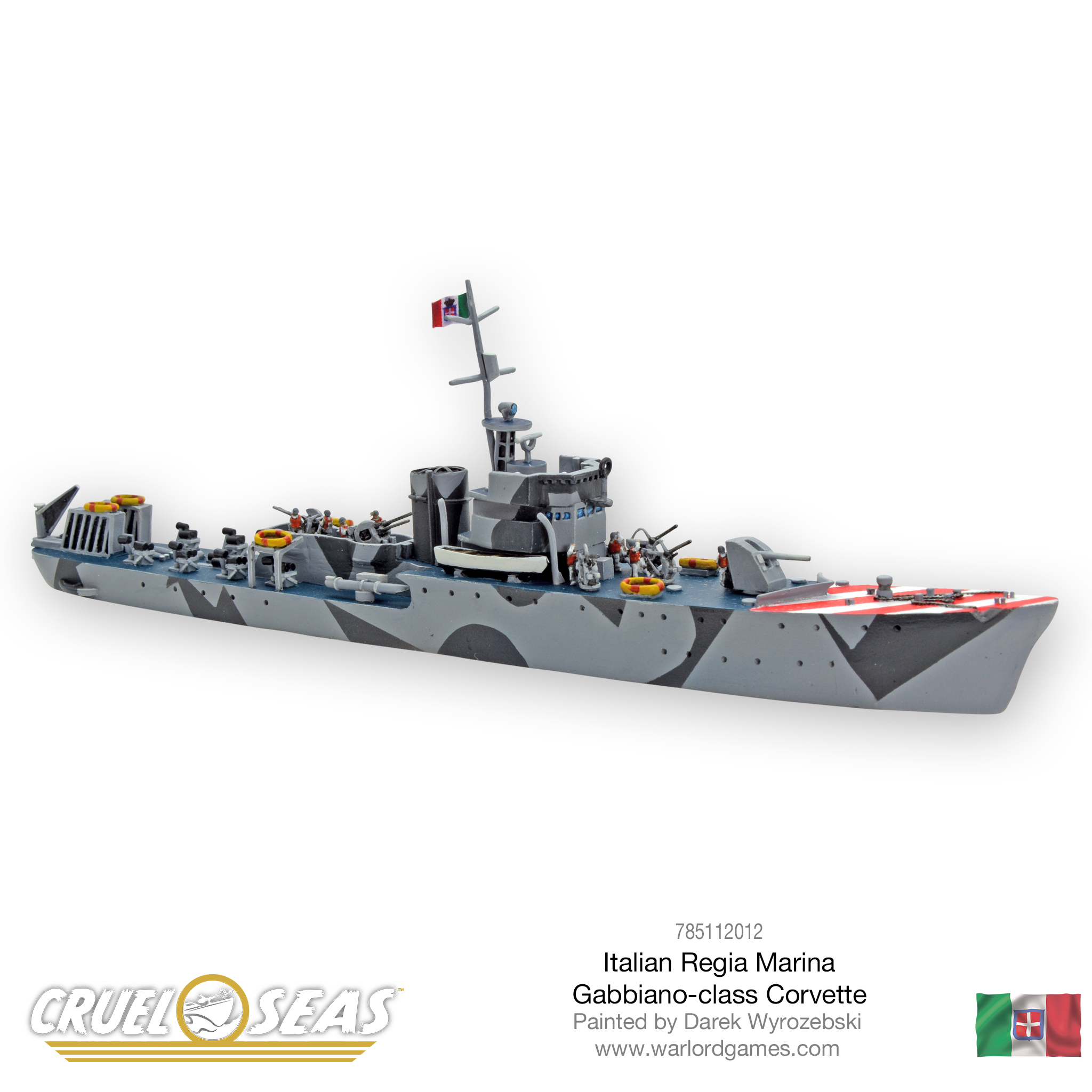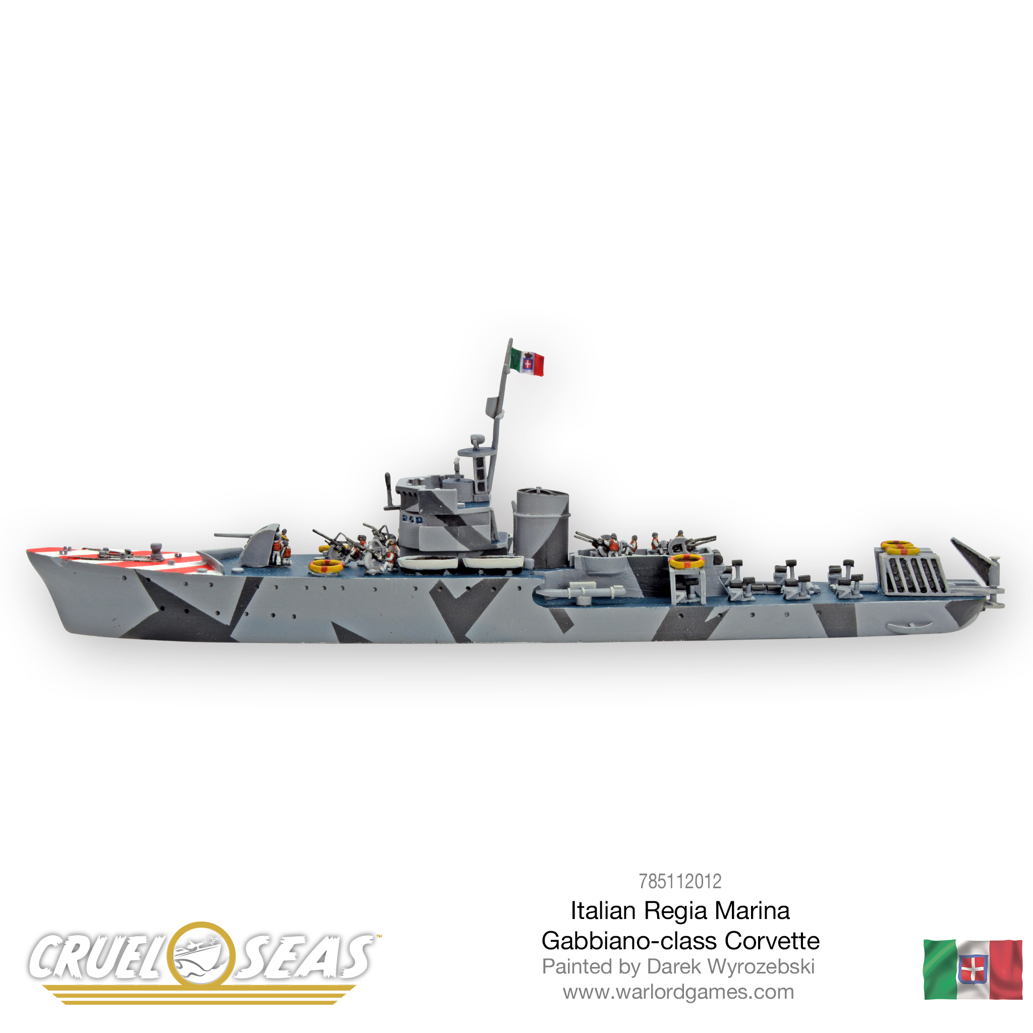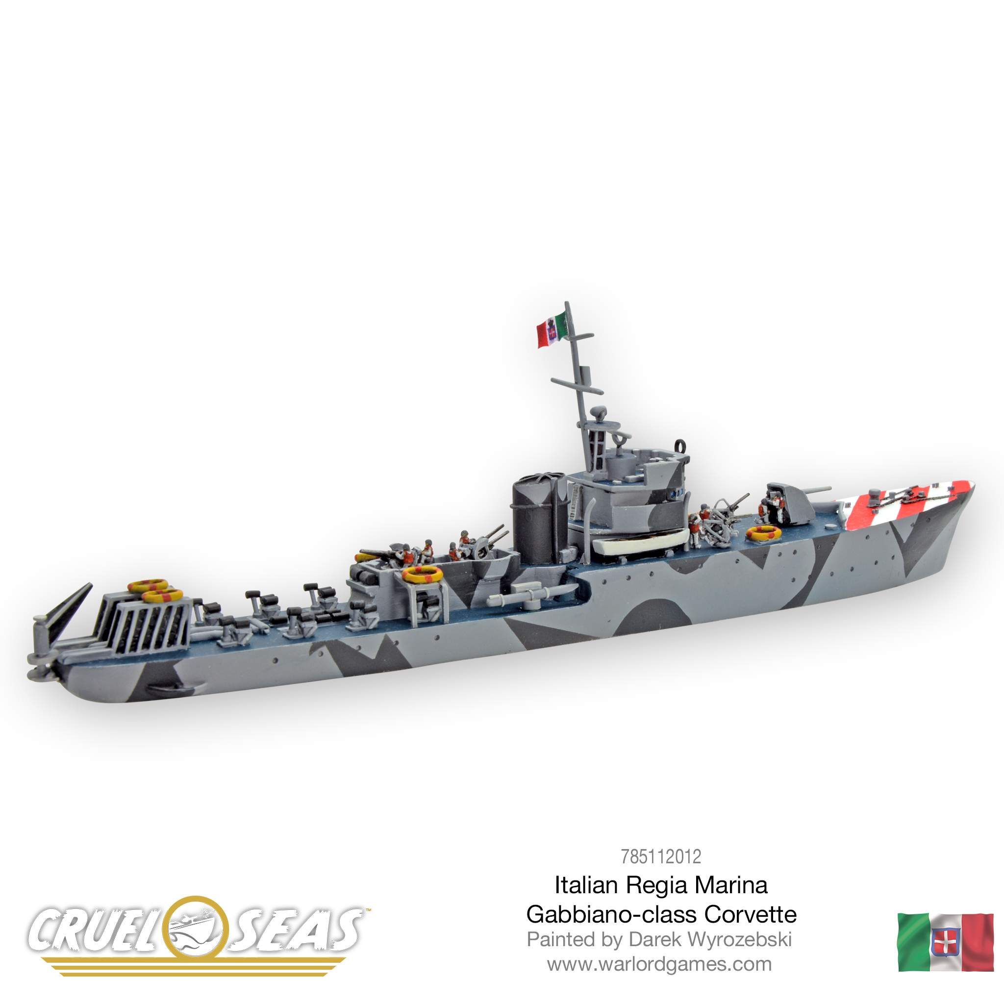 Gabbiano-class Corvettes were excellent ships, well-built and pleasing to the eye. Their depth charges could be modified to fit a pattern of twelve bombs in a barrage all around the boat to increase its chances of getting a submarine kill. They were not fast, 18 knots at best, and generally patrolled at twelve knots. They had a crew of 100, and of 60 ordered, 28 saw action.