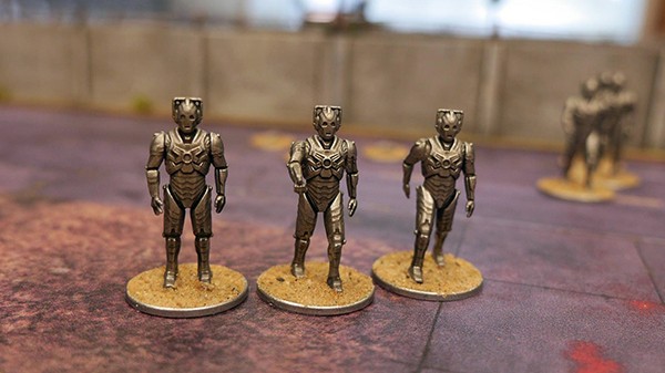 Most tabletop gaming figures have odd proportions which came from the early days of metal casting capabilities – large heads, big hands, short legs and over exaggerated details. Our figures are scale representations of the characters from the show so are slimmer in general and the features and details subtler. To show these off to their best and to allow our master casters to stand a chance of producing the antennae, fingers, etc on the models we decide to make them a slightly larger scale.