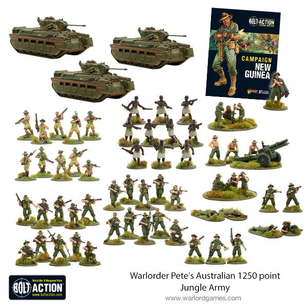 You can get Warlorders Peter Hely’s 1250 point list with this set! It also comes with the Bolt Action Campaign book: New Guinea for free! Additionally, it comes with a Flamethrower and a light mortar team allowing you to mix up his army and create it to be your very own force!