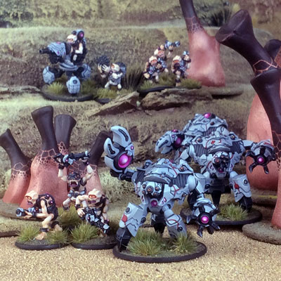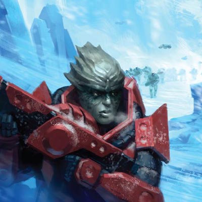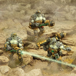 The Ghar themselves are hunched, repulsive creatures but they are rarely seen out of their huge, armoured battle suits. Their tech is relatively primative, powered by unstable plasma reactors that constantly leak toxic radiation.