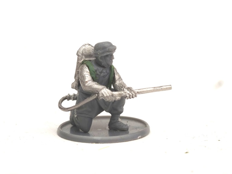 Marrying the metal parts to the plastic was easy, and to add a little more detail I added some shoulder straps using green stuff for the flame thrower. Simple, and done!