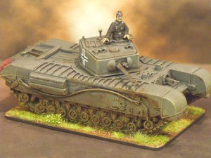 Dan: This vehicle is definitely the most unique model now in my collection. I conducted some minor modifications to convert the Churchill Mk VII model from Warlord Games into a Mk III variant. The nature of the model precluded me from completely changing the appearance to that of the Mk III, particularly the track guards. Regardless, I am happy with the results and hope you enjoy.