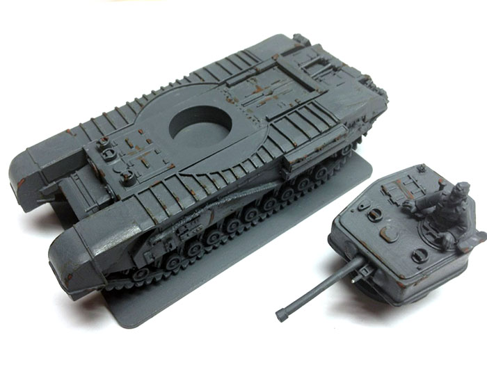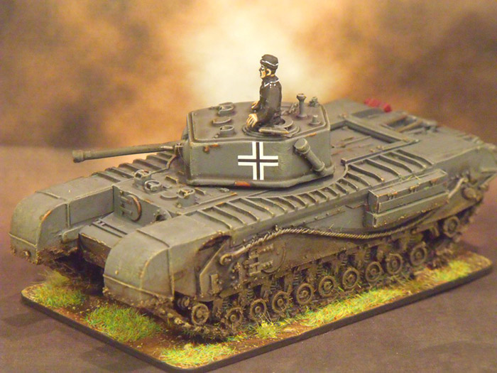 My intent with this model was for a captured Churchill Mk III in German colours. Perhaps it was captured after the failed Canadian raid at Dieppe? Or maybe it was captured from the Soviets, where it was in use as part of the Lend Lease program?