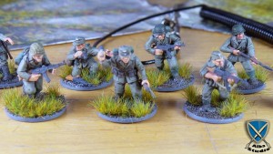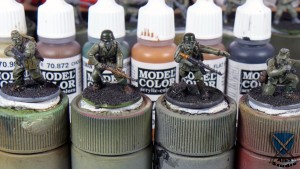 Tom: This is a quick guide to show how little time it can take to get figures to a decent tabletop standard. There is some small detailing not mentioned such as the Molotov etc. but this covers the vast majority of the work. Drying time is not included and the colours are only suggestions – use what YOU want, Vallejo have a colour equivalence chart for other brands.