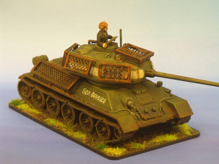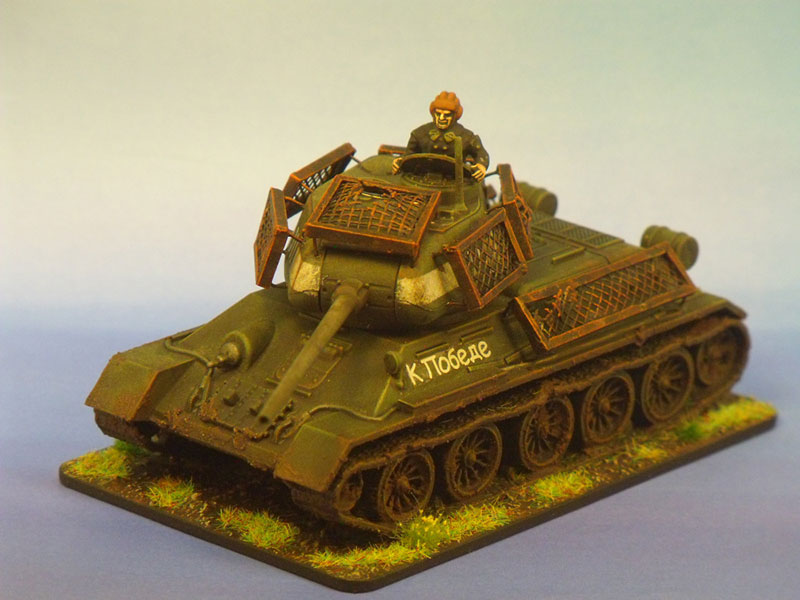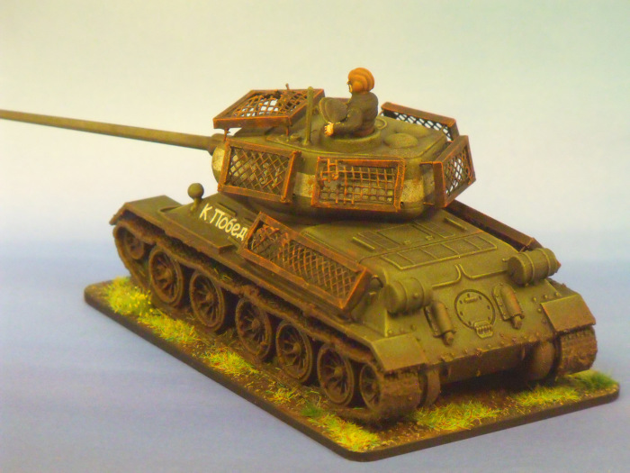 The T34/85 is a vehicle synonymous with the later portion of the Eastern Front, and photographs of the vehicle with improvised spaced armour are common. This often took the form of mesh frames welded to the large flat surfaces of the vehicle as a desperate attempt to mitigate the omnipresent panzerfaust threat. The idea was that the shaped charge of the panzerfaust would detonate upon the mesh of the “bed spring” rather than the armour of the tank, thus negating much of the penetration effect.