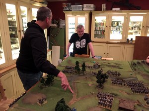 The French start arguing amongst themselves as their General stretches his tape – will the dragoons that have sat on the hill actually pass an order this turn?