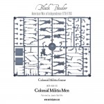 (The figures in this box wear either 18th century civilian clothes or hunting shirts and trousers. A variety of headgear is included allowing you to also make models ideal to use as French troops in the French Indian War 0f 1754-63)