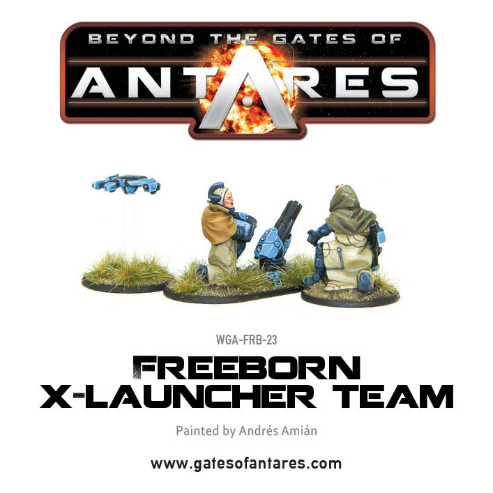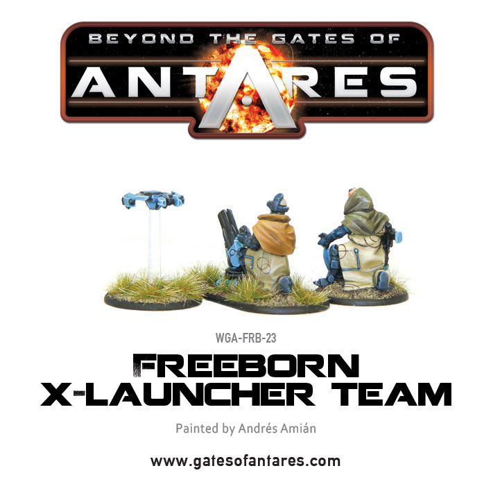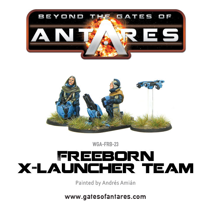 – 1 x Freeborn Support Weapon Team: X-launcher, 2 Freeborn crew, Spotter drone