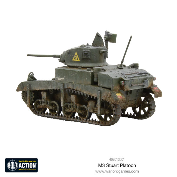 This platoon comprises x3 plastic M3 Light tanks with options to use: