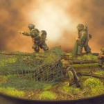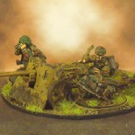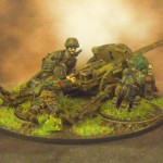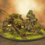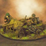 The Pak 38 is a fairly straightforward model, fitting onto my usual 60mm round team base. As with the other three guns (and the rest of my Fallschirmjager army for that matter), I went for a beaten up and well used look. This was accomplished via the “sponge method” of weathering which I hope to detail in a later blog post. The crew being used on this model are actually from my panzerbusche 41 team.