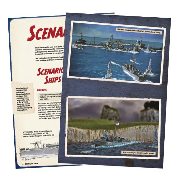 The Cruel Seas boxed game, ‘Strike Fast, Strike Hard!’, contains: