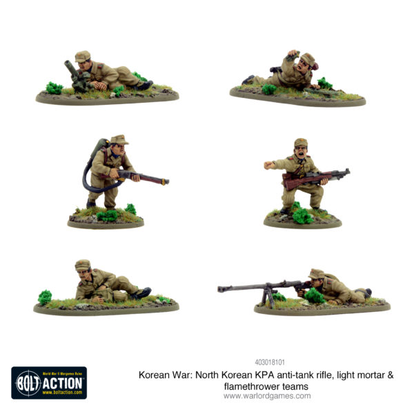 Give your KPA force some much-needed punch with this set of brand new support weapons! You’ll get an anti-tank rifle, a light mortar, and a flamethrower.