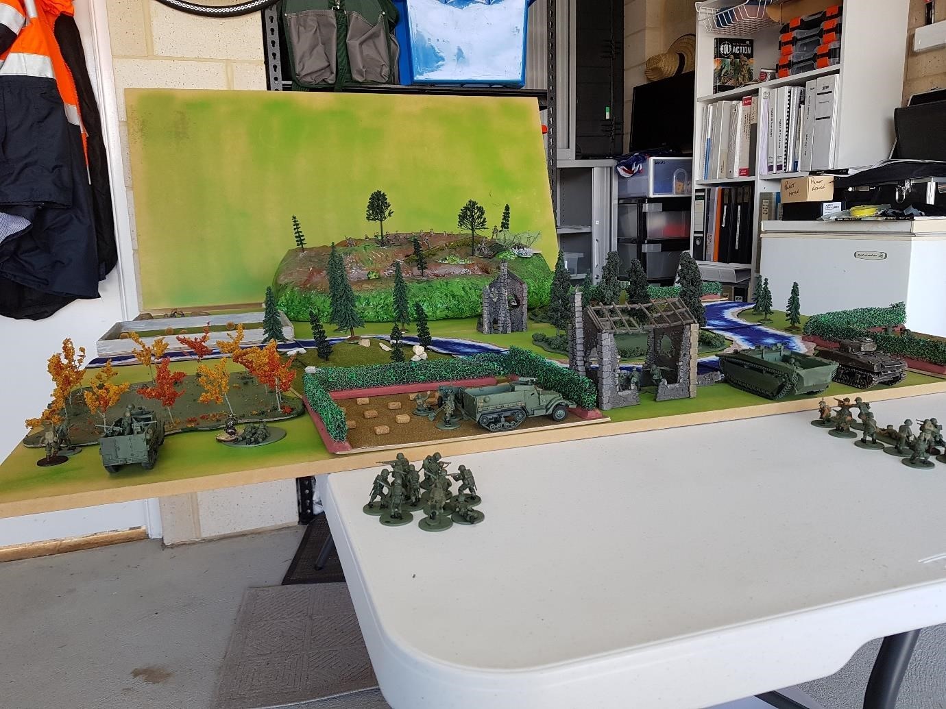 Having been made redundant recently, I had a bit of time up my sleeve and decided to try out my Aussies against the Americans – as yet unplayed. Decided on 1250 points as I had a couple of companies built in boltaction.easyarmy.com and set about building a 4 x 4 table in the garage while my wife was at a work.