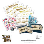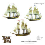 Alongside a softback copy of the Black Seas core rules, you’ll get nine beautifully detailed plastic miniatures; three frigates and six brigs. You’ll also get sails, rigging and flag sheets for all your ships and all the ship cards, wake markers and tokens that you’ll need to play.