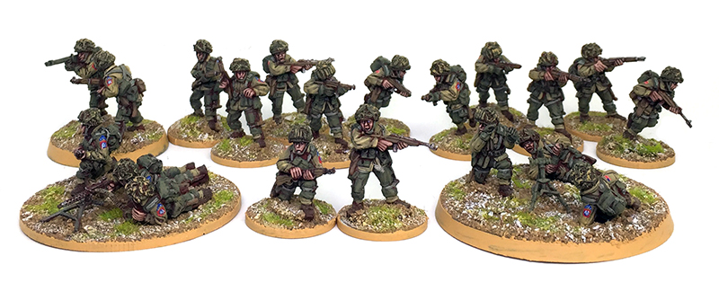 Starting with the British we have about 445 points worth of veteran paratroopers led by a 1st Lieutenant and with a fair bit of support (check out the Market Garden selector on page 83 of Armies of Great Britain for a full listing).