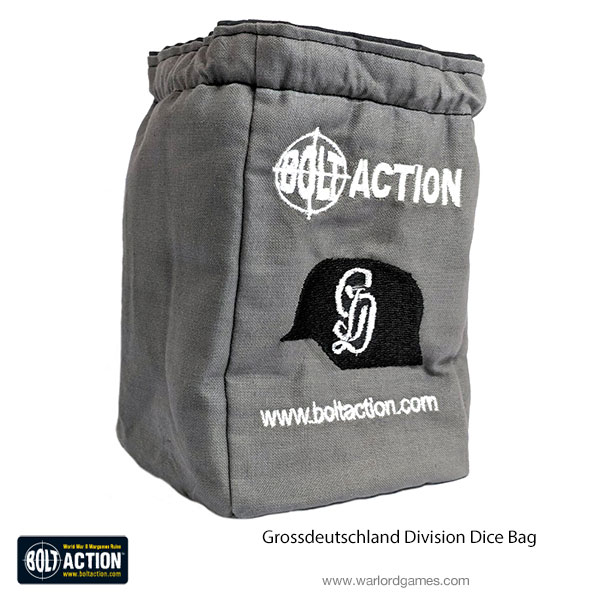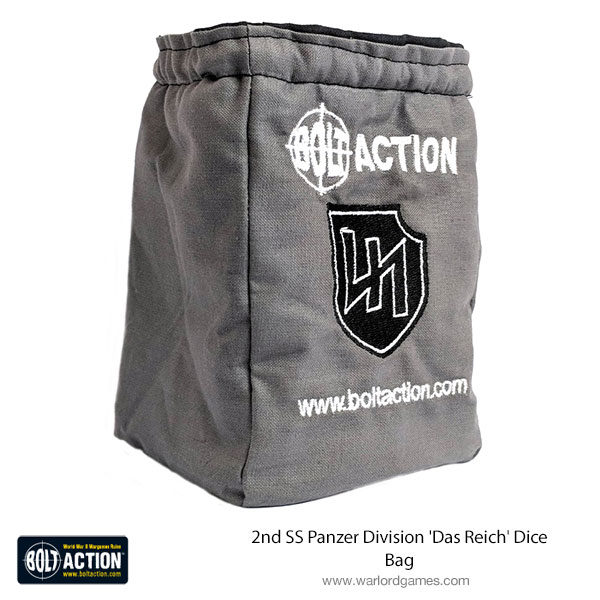 Come prepared for your Bolt Action battles with a stylish choice of themed dice bags bundled with a pack of order dice!