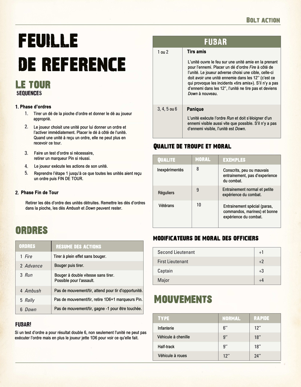 Bolt Action: Rules summary sheet in French!