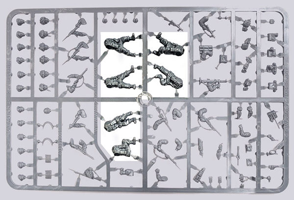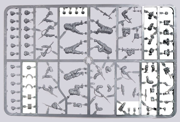 This sprue allows you to create 6 action-packed British Airborne troopers, 2 standing, 3 running and one in a kneeling position.