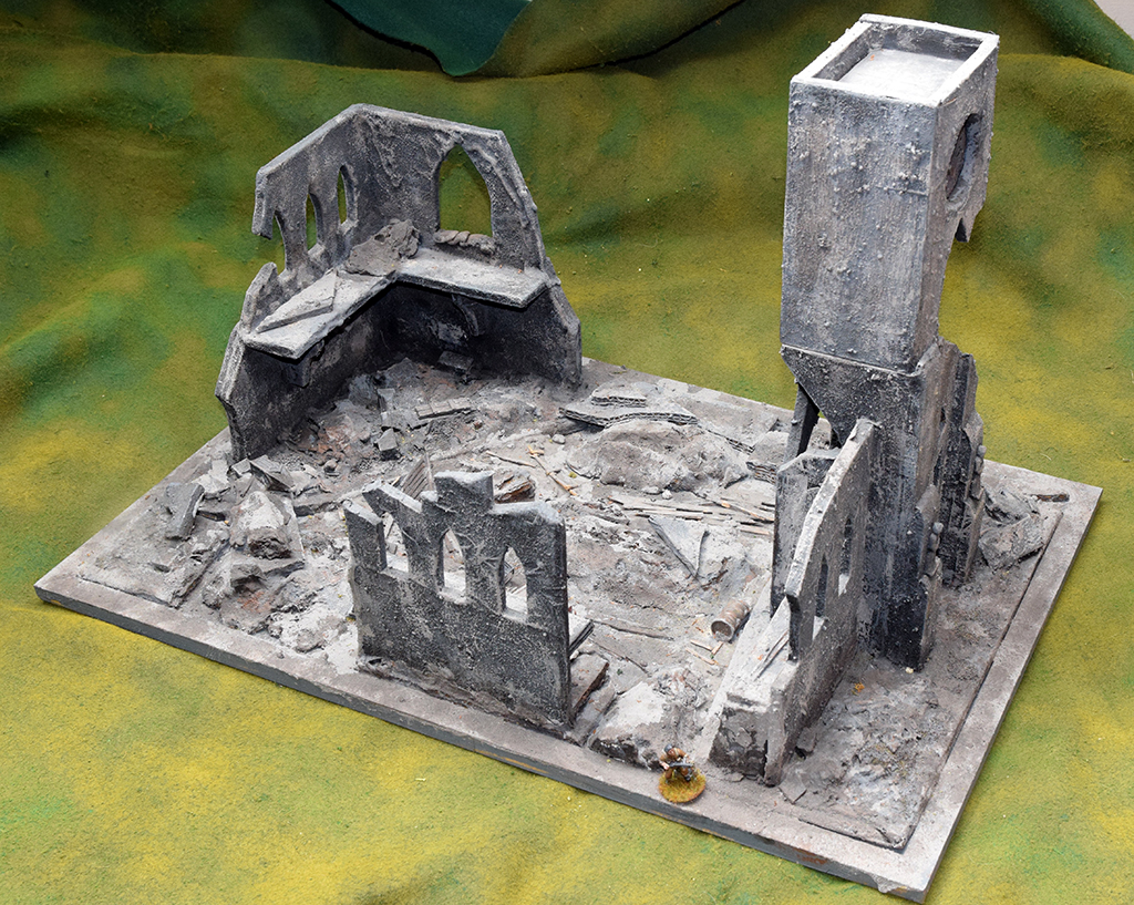 At first glance the final picture is very ‘Europe specific’…a great big ruined church. In fact, it started life as three separate ruin structures for fantasy games (courtesy of Stephen Renwick of Thule games). Although we re-purposed the original parts into a modest ruined church for 54mm games – yes; we are sad individuals who play Bolt Action in 54mm. It makes a perfectly adequate ‘big’ church or abbey or maybe even a cathedral for our 28mm collections. What is more, it’s not really limited to Europe, nor even to being a church. Wherever the Europeans went as colonisers, they took gothic architecture with them. It has, in the past, represented the wreckage of a government building and for the sake of positioning it beside some railway tracks and removing the upper part of the tower the ‘big church’ has also been known to serve as a bombed-out railway station.