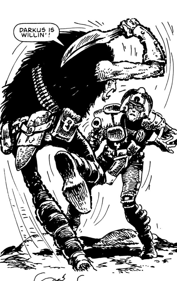 Darkus and his Howlers first appeared when the Heavy Discipline Party took over the Badlands, on the planet Burrito. This was formerly a hideout for all manner of unsavoury criminals, but now there was an Amnesty bringing their privileged status to an end and all wanted criminals had until noon to surrender.