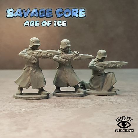 Three 28mm white metal miniature supplied with 30mm display bases. Supplied unpainted. Sculpted by Steve Saleh.