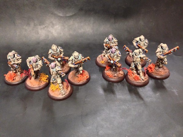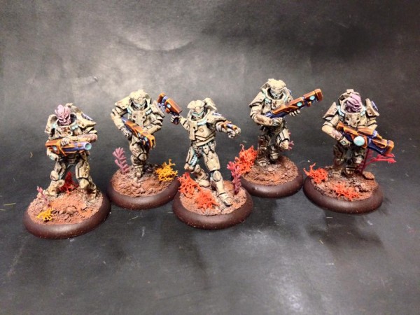 In Beyond the Gates of Antares, there are no ‘set’ or even ‘standard’ paint schemes – the universe is incredibly vast and varied – so Boromites come in a vast variety of skin colours depending upon their location and circumstance. Some might be brightly coloured if they’ve evolved in a vibrant environment, whereas others might perhaps be more blandly coloured in dull colours if it better camouflages them to suit their environment…