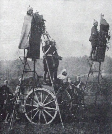 All modern armies got new equipment for indirect fire. In German it was the gun’s Rundblickfernrohr / dial sight, the Richtkreis / aiming circle and the Scherenfernrohr / scissors telescope. And often a telephone. To carry the stuff for the observer wagons got introduced in the armies.