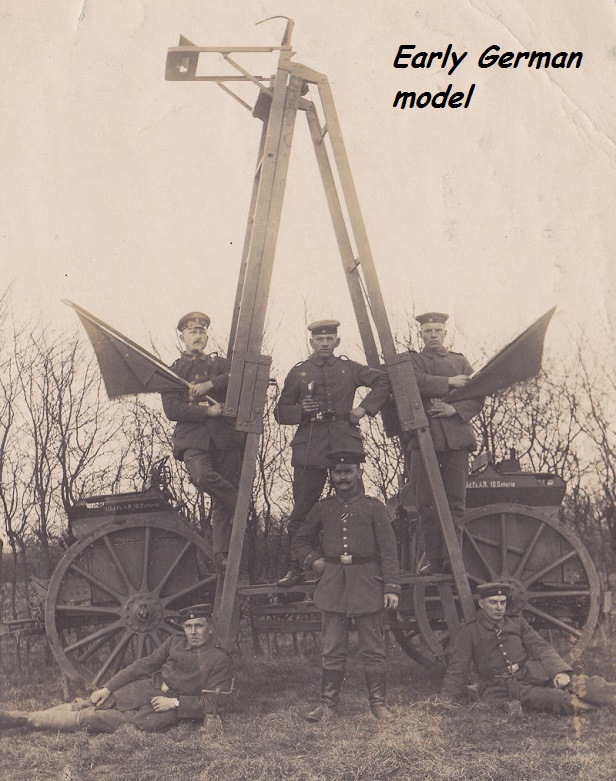 invisible officerParticipantIn 1914 the German army had the most modern ladder. A steel tube one that could be assembled for some different level settings. At the top was a bullet proof shield for the observer and a scissors telescope that looked over the rim.