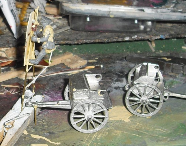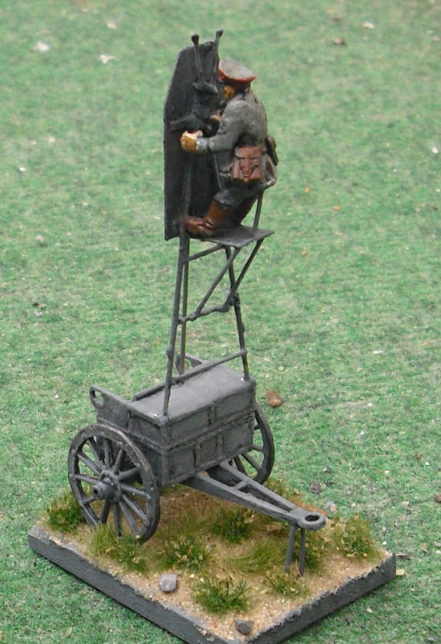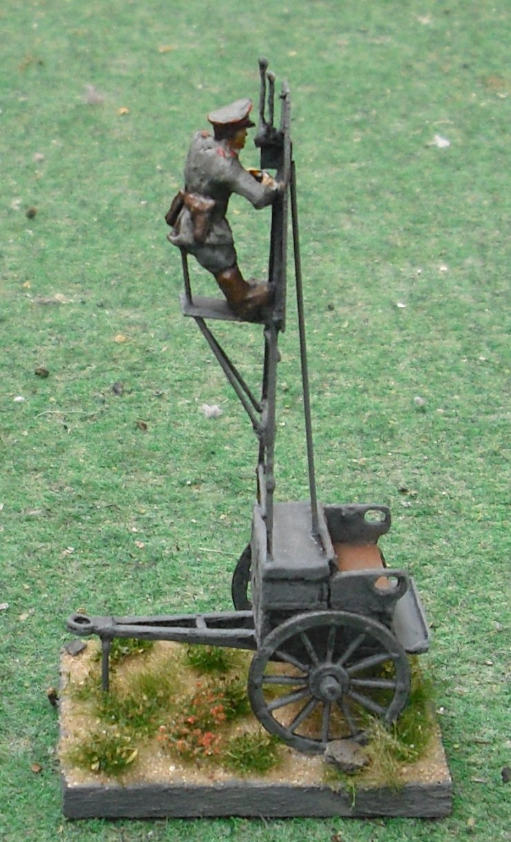 In classic semi covered battery the CO on horse was to be high enough to look over the crest. Not ideal. So these wagons got a ladder. At first clumsy devices that looked like those of fire services. The RA got a pole one with L shaped steps. But that could only be used in a one level setting fixed on the car.