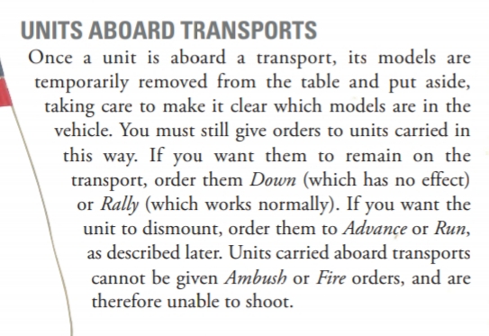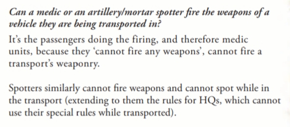 Forward Arty Observers – seeing that they call in a bombardment using a fire order, I take it they can’t observe from within a transport?