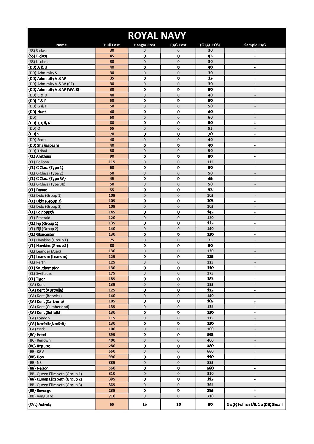 In general, please keep in mind that Warlord Points are abhorrently imbalanced, and USN CVs / airstrikes / planes benefit massively compared to other fleets. Take this into account if you’re looking for a balanced fight and either ignore points altogether or use a custom point system (including the most recent SHIPS version for your perusal, as it massively rebalances CV and plane scoring).