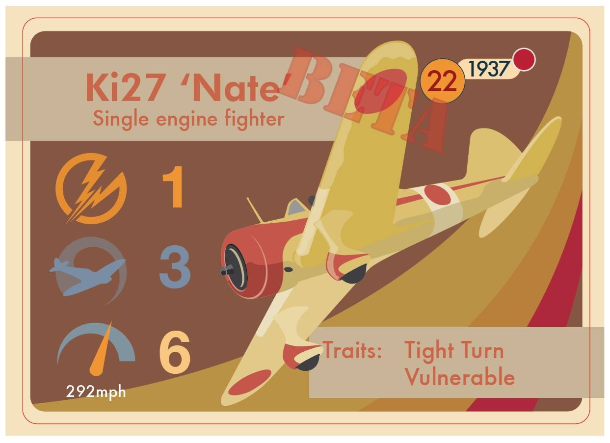 ParticipantHi everyone. This week’s Leak of the Week on the Ready Room group on FB is something a little more way out East. Here is the Japanese Ki 27 Type 97 Army Fighter, or Nate, as the Allies called it. The Ki27 was the first monoplane fighter of the IJA, and saw a surprising amount of action, first in Manchuria against the Soviets, then in China against the Nationalists, and finally in WW2 against the British and US. Like the Zero and Oscar that followed it, it turns on a (insert local currency of choice here) but is slow, lacks punch, and is very vulnerable to return fire. In the hands of an expert it can still be deadly, one killed a P38 late in the war, and managed to damage a couple of Mustangs too. Graphics as always by the talented Martin Evans. Give it a whirl and tell us what you think. Cheers