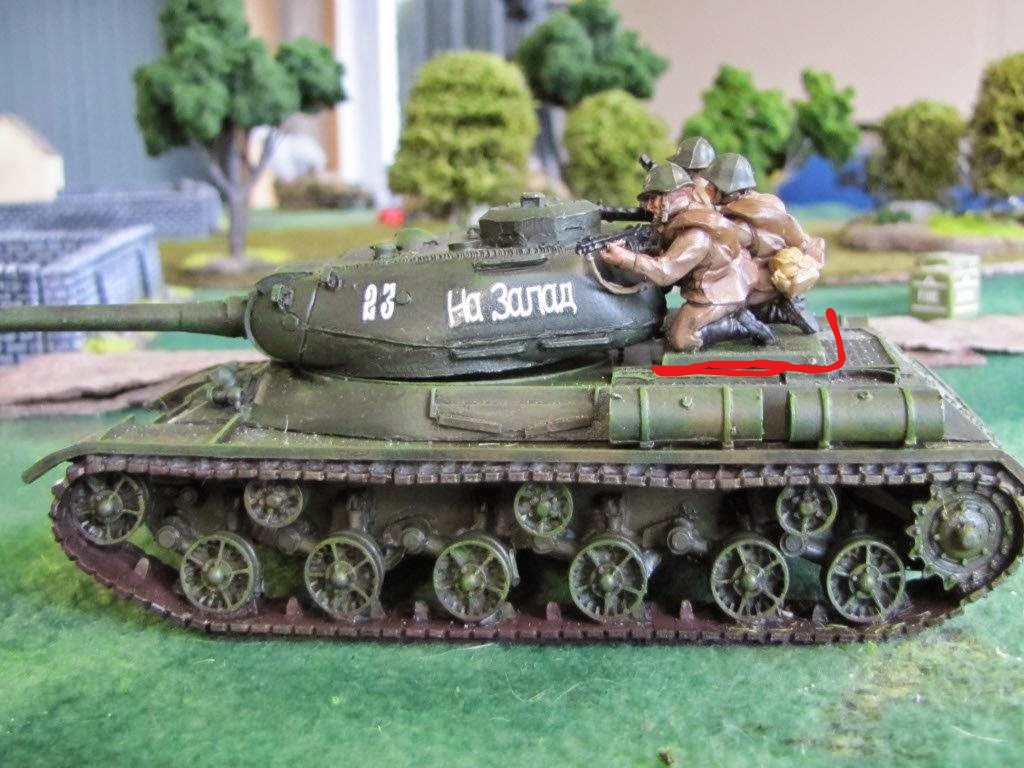 Jim RipleyParticipantI build my figures to fit in a specific spot on a specific tank so I tend to glue them on . That being said I do have a few generic seated figures that can be put anywhere if needed . I have had a few ideas for removable figure groups though . Tiny rice grain sized magnets might work in the figures feet if the plastic engine deck is very thin , probably wouldn’t work on resin tanks . I guess you could drill a hole in the deck and add your magnet but that would ruin the detail , not a problem when the troops are mounted but would look crap IMO when the troops are removed . You could drill tiny holes in the tank and mount pins in your figure’s feet . again the deck would look crap when troops dismounted . You could mount the troops on a thin plastic base ( maybe clear ) , easy to add . easy to remove . looks ?