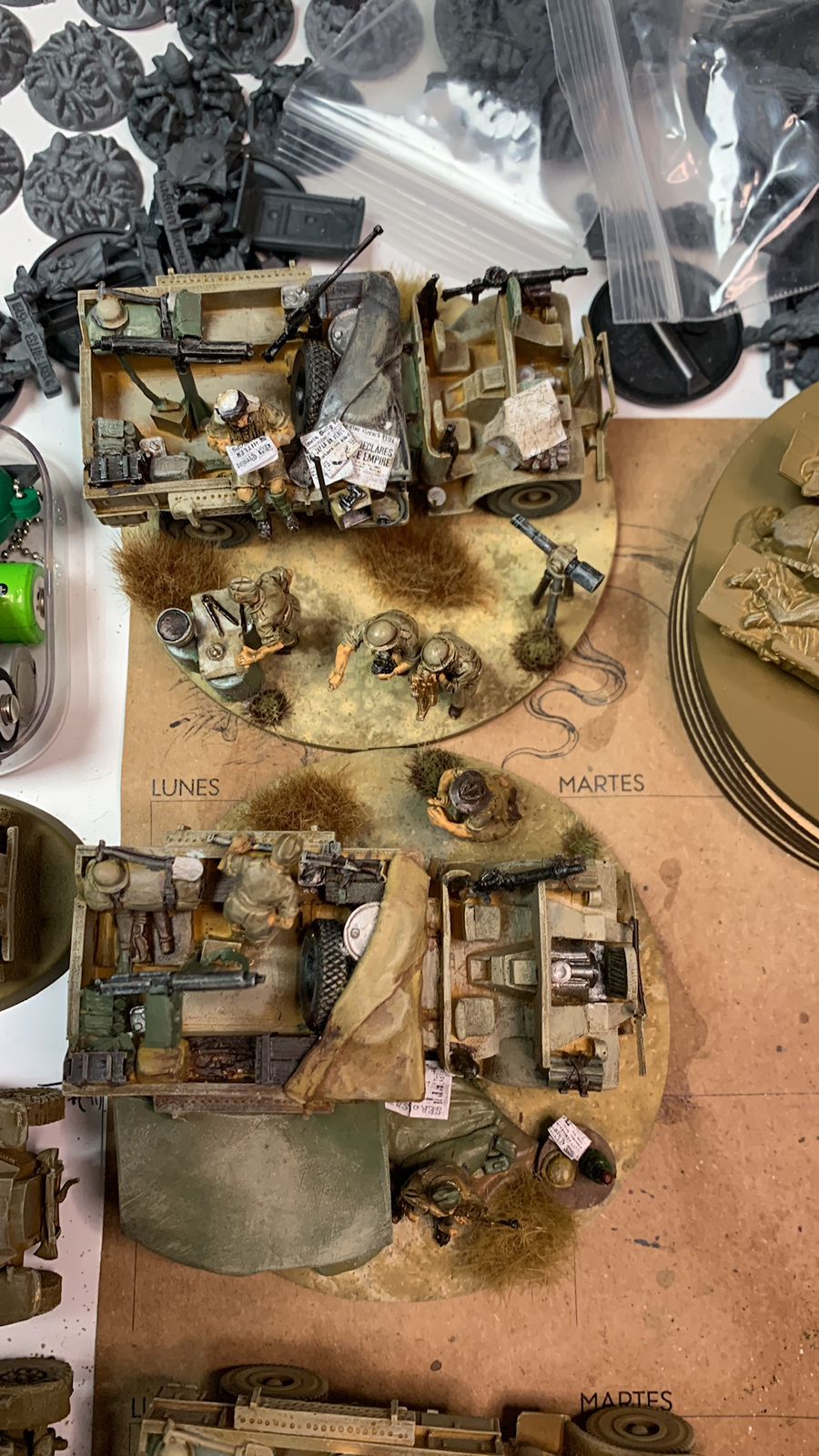 Not done much hobby most of the summer but then went crazy in late September building a M3 Halftrack , a Matilda , a BMW motorbike , a half dozen Waffen SS & Brit Paras . Although the figure kits go together great . I’m not really liking all the molded on weapons , really cuts down on the kitbashing . Might have to pick up a box of Russians and Blitzkrieg Germans just for the weapon free arms .