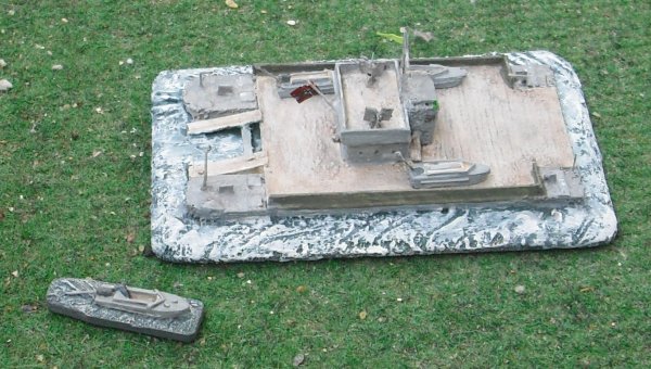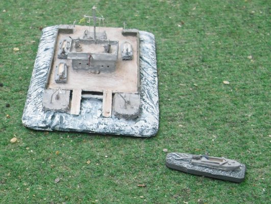But as long as the connections worked it was more stable than a single hull vessel.The successor was the Pi Lf 44 that differed mainly by a ship shaped bow section and more guns. At the bow medium ones to fight MGB and a 7,5 cm in mid of deck. The deck house was bigger, reaching the sides. Speed was increased to 10kts.