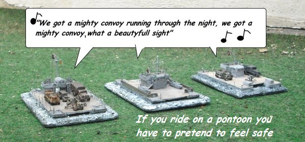 Sometimes the PiLfähren got used as bridges, lying side by side. Connected with bridging decks they could take even the heaviest Panzers.