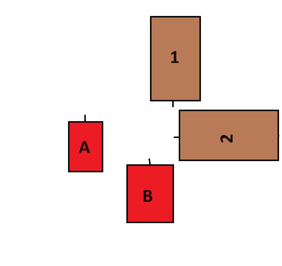 It is the Zulu turn, and unit 2 is within 1 move of B and 2 moves of A. A charge is declared upon unit A, and get an order roll permitting 2 moves.