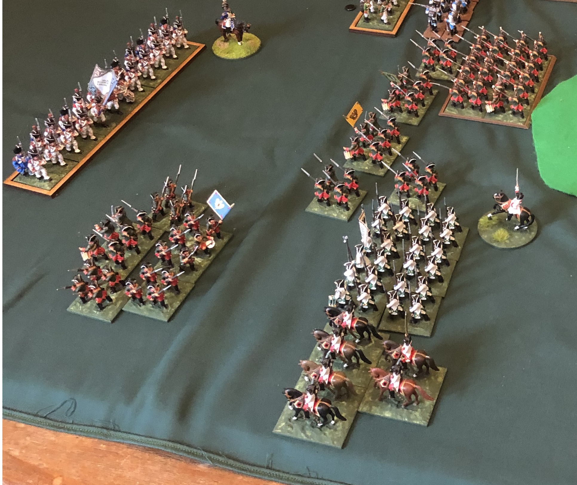 Looking at the photo, I think the grenadiers could have used an Initiative order to charge the Jaegers or the square since they both appear to be in the front quarter. But since you chose to charge the Jaegers, hopefully, you gave the square “traversing fire” as the Grenadiers passed by…
