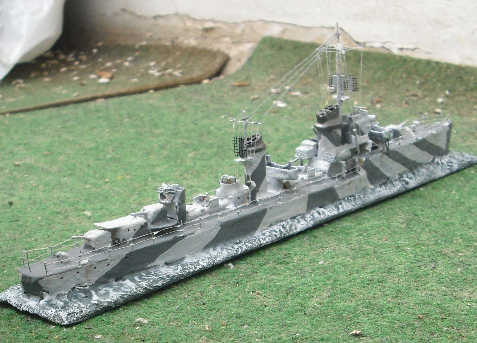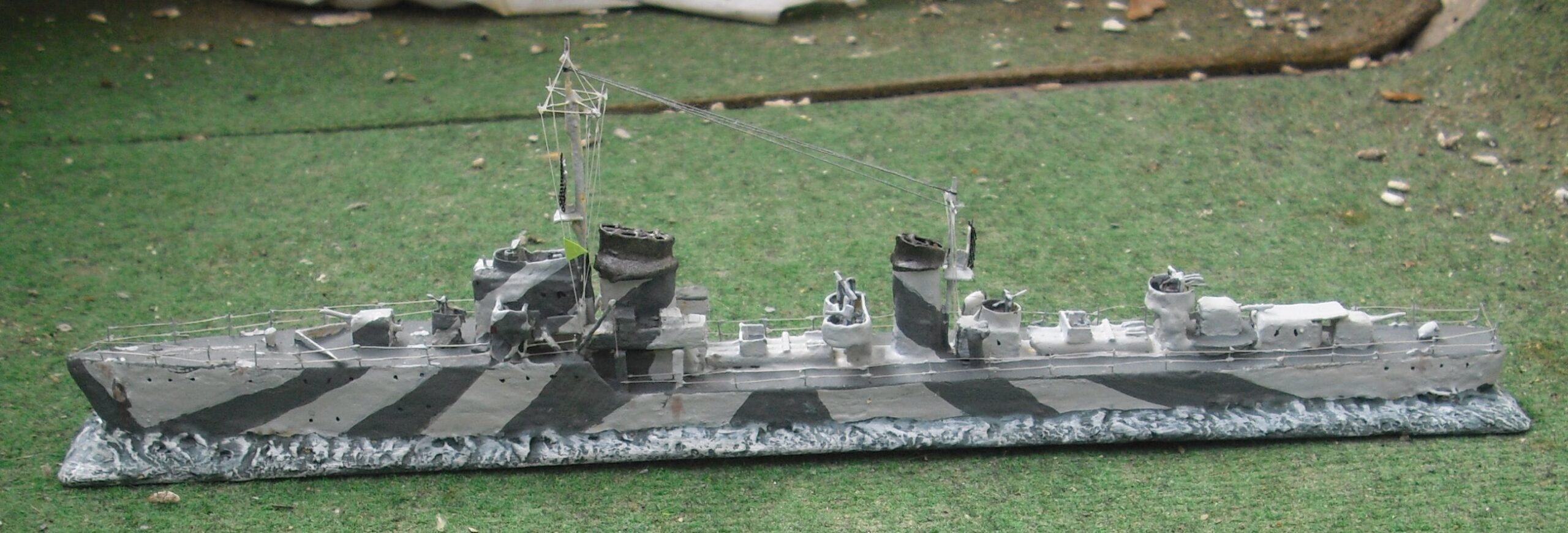 Jaguar was the only one with a 2 cm in front of bridge. Many books claim two twin 3,7 cm AA guns but these never replaced the 2cm between the stacks as intended. Aft ranging Langbasis was replaced with a 2cm and between aft torpedo set and 10,5 cm gun a AA platform was added. At first with a 2 cm, later with a Vierling or a 3,7 cm. The camo of the model was common on Raubvogel boats and Jaguar. It was first used in 1943 on Zerstörer, so it is often claimed to be a type camo to give the impression of a larger Zerstörer.