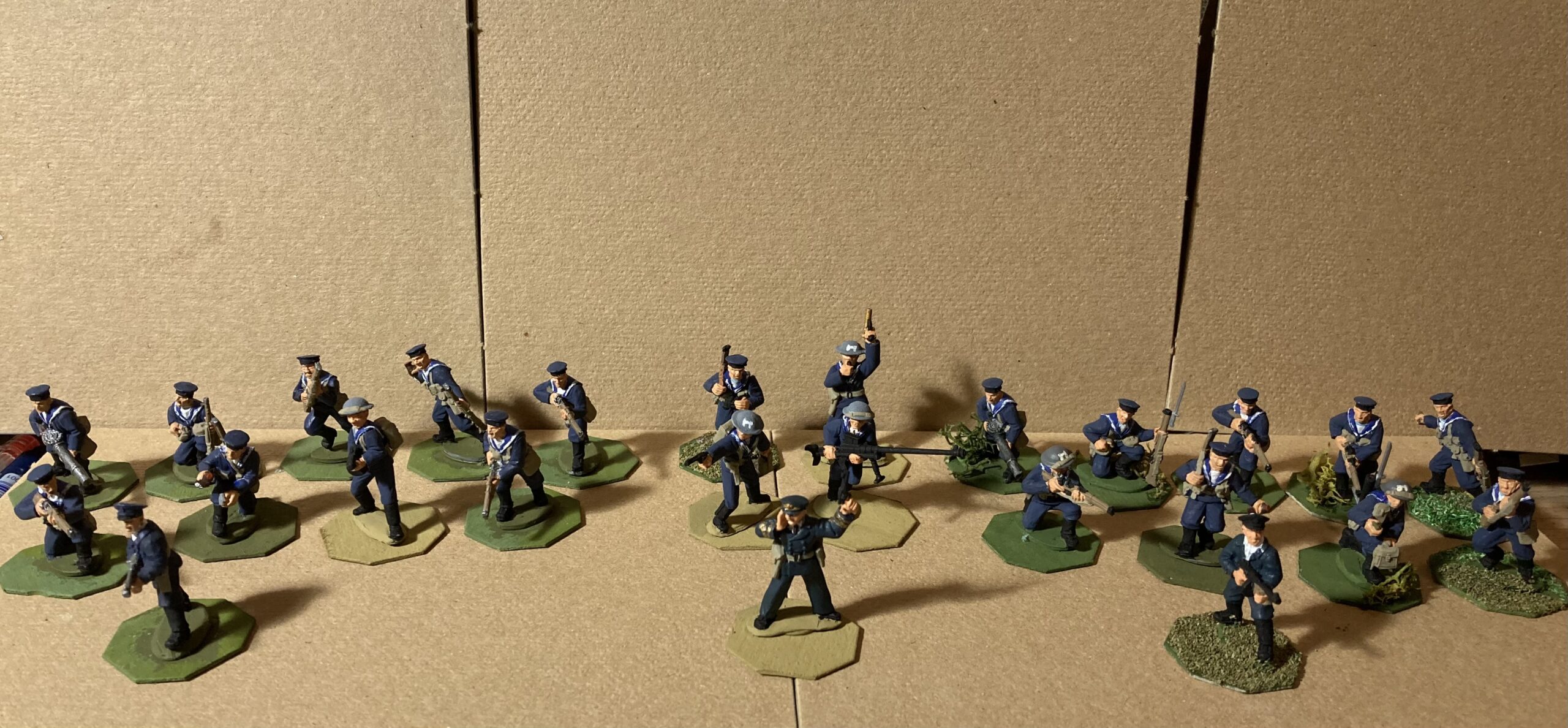 My naval landing party comprising two full sections, an anti-tank rifle team, a sniper and his number two, and a Lieutenant to lead them.