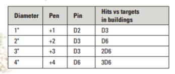 ParticipantIf you want to confirm translating first edition HE to second edition templates, the chart Master Chief posted is p70, Weapons, Weapon Special Rules, HE (High Explosive). Next para below the chart tells you to use the column Master Chief directed you to.