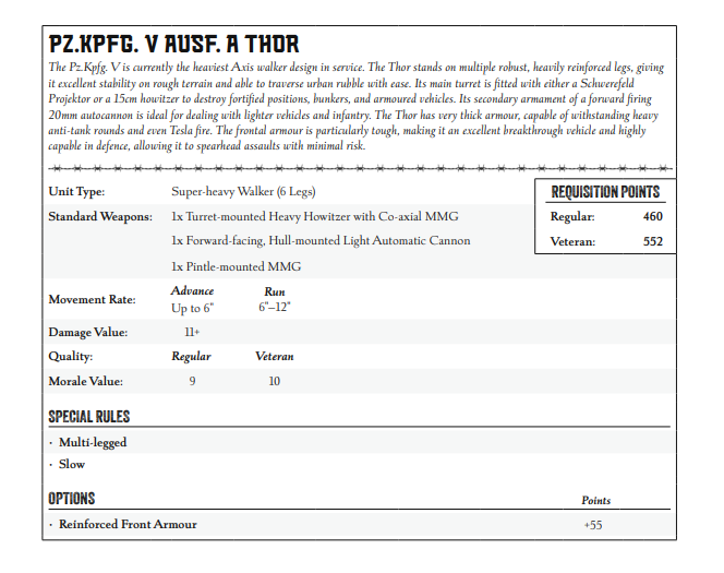 ParticipantIn the unit description of PZ.KPFG. V AUSF. A THOR walker in the Axis army list PDF, it mentions that its main turret is fitted with either a Schwerefeld Projektor or a 15cm howitzer, but it seems that there isn’t an actual option to do that. Is this just a typo/oversight or are there plans on releasing a Schwerefeld projector turret that could fit onto the Thor walker?