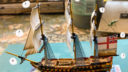 This one piece of cotton can be applied in about 2 minutes. It gives you somewhere to hang the big flag at the back, the little flag at the front and those little triangular sails at the front, it also gives a good “feel” of being rigged.