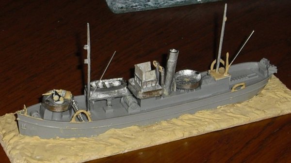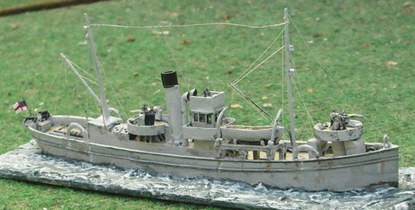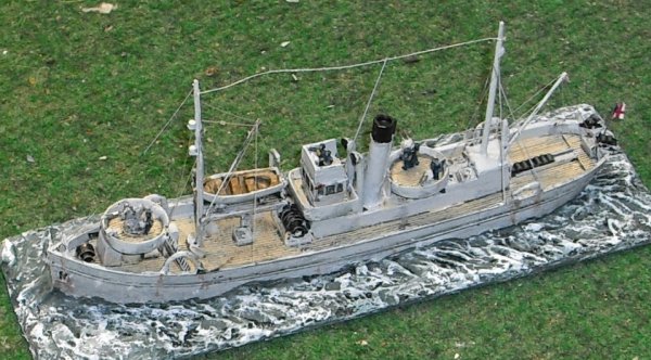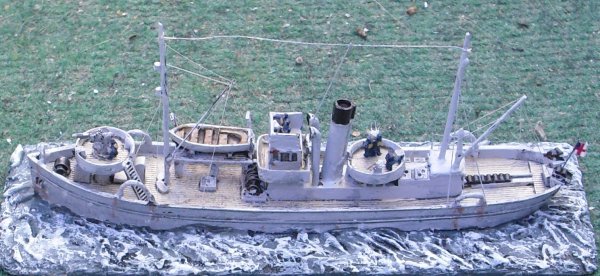 So first conversion was the armament, scratch 12 pdr and MG. Aft mast area was different and a crane had to be added. Above bridge a command deck was to be added. And the fishing gallows at the sides.