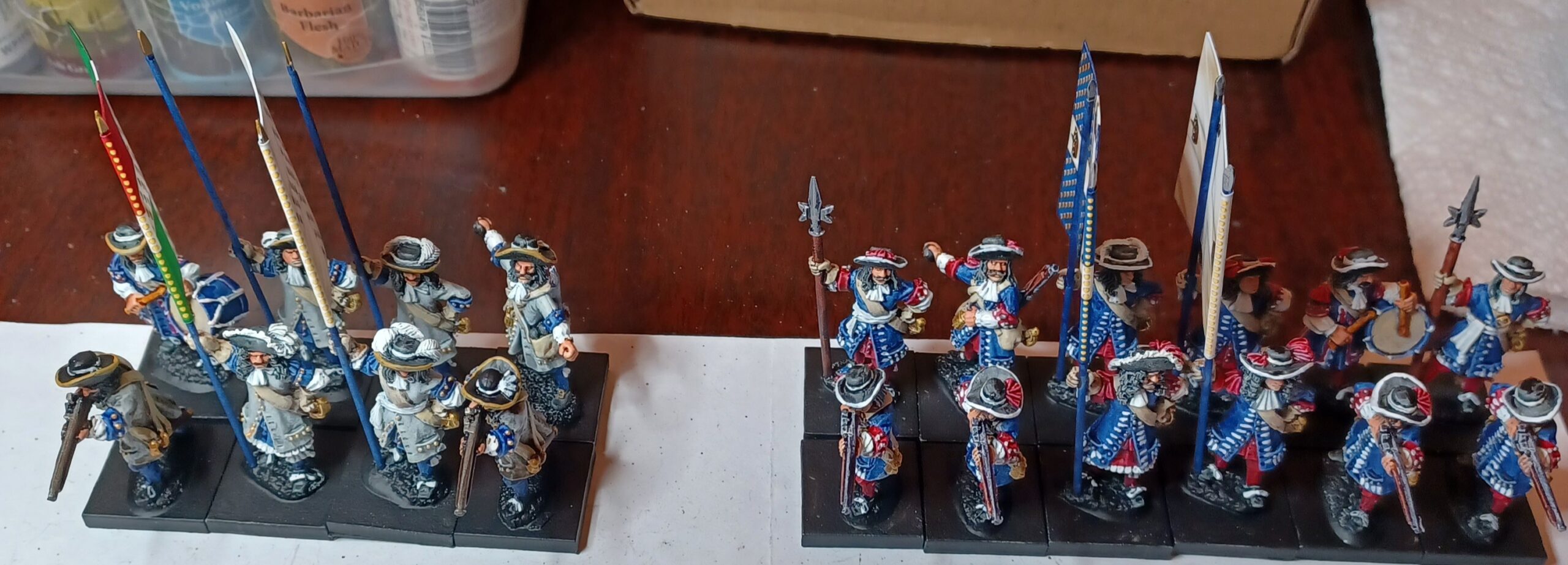 ParticipantGamers in my area have been playing pike and shotte for a while using 8 man shotte units and 16 man pike units both using a 4 man fronts or 80mm. I’m new to the game and am building the French 1690 army from the rulebook. To try to match their units but still look like a reasonable later period regiment, I’m wanting to use a 12 man unit with a 6 man front or 120mm. Some are saying a standard size unit is 8 men. Others say it doesn’t matter. My reading of the rulebook says it doesn’t matter. What’s the general consensus for unit sizes matching your opponents? I’m including a picture showing an 8 man and a 12 man unit. I could play 8, but 12 looks better. 20 would look even better, but they’d be way bigger than anyone else locally.