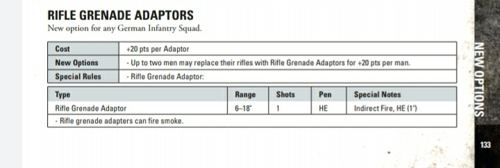 I play games based on Fortress Budapest, and I have no Stalingrad book. BUT I saw rules for rifle grenades in the Contents list. Can anybody let me know about if there is any new rules according to the rifle grenade adaptors? Thanks in advance!