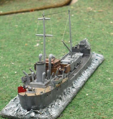 I decided to do the model without the gun. Very small ships like that rarely got one if crewed by merchant sailors. RN had some water tankers of similar size, even they had normally just 20mm AA guns. Best defense of the minis was the size. Hard to hit with a torpedo.